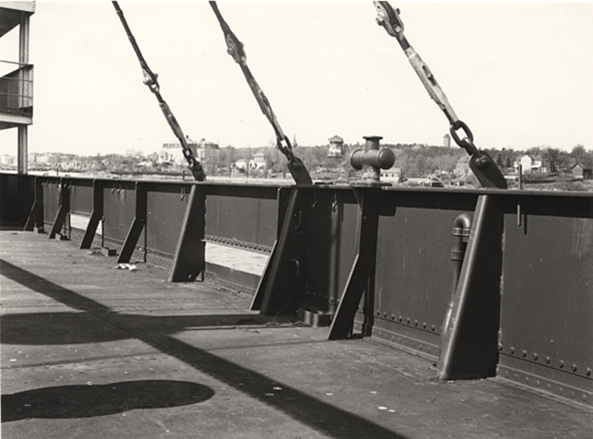 Lastfartyget m/s FENRIS av Stockholm. Detalj av stordäck, st.b. sida.