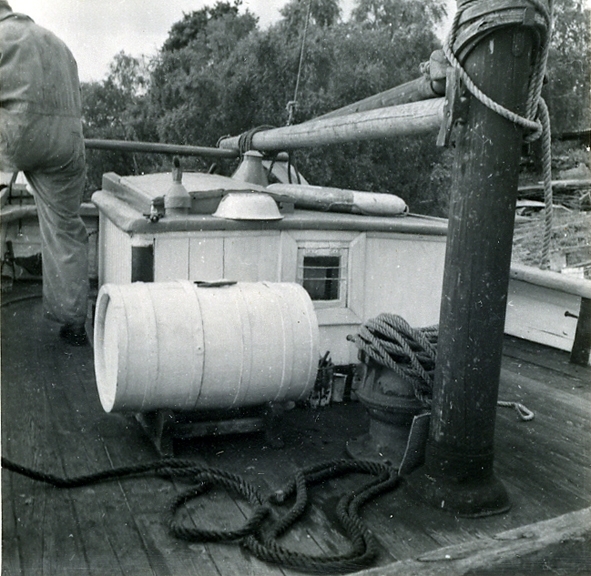 Galeasen Förlig Vind. Akterdäck med kajutkappen och vattentunnan.