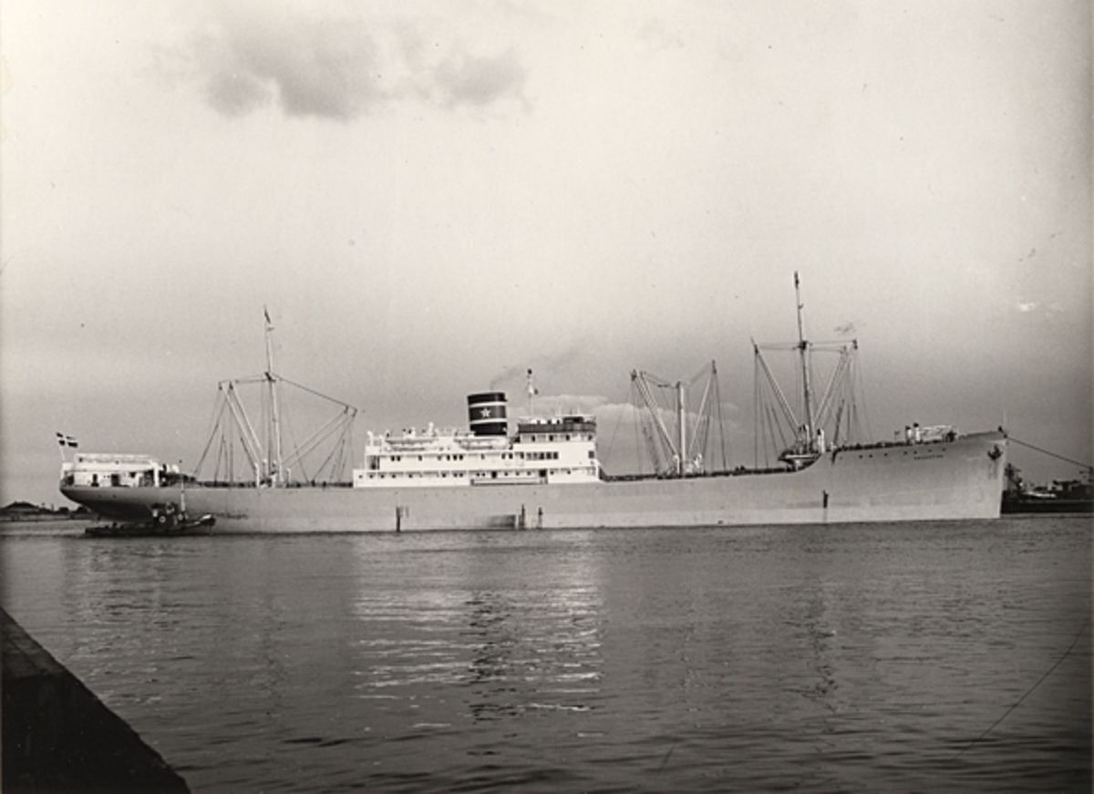 Foto i svartvitt visande lastmotorfartyget "ARGENTINA" taget i Köpenhamn under maj månad 1961.