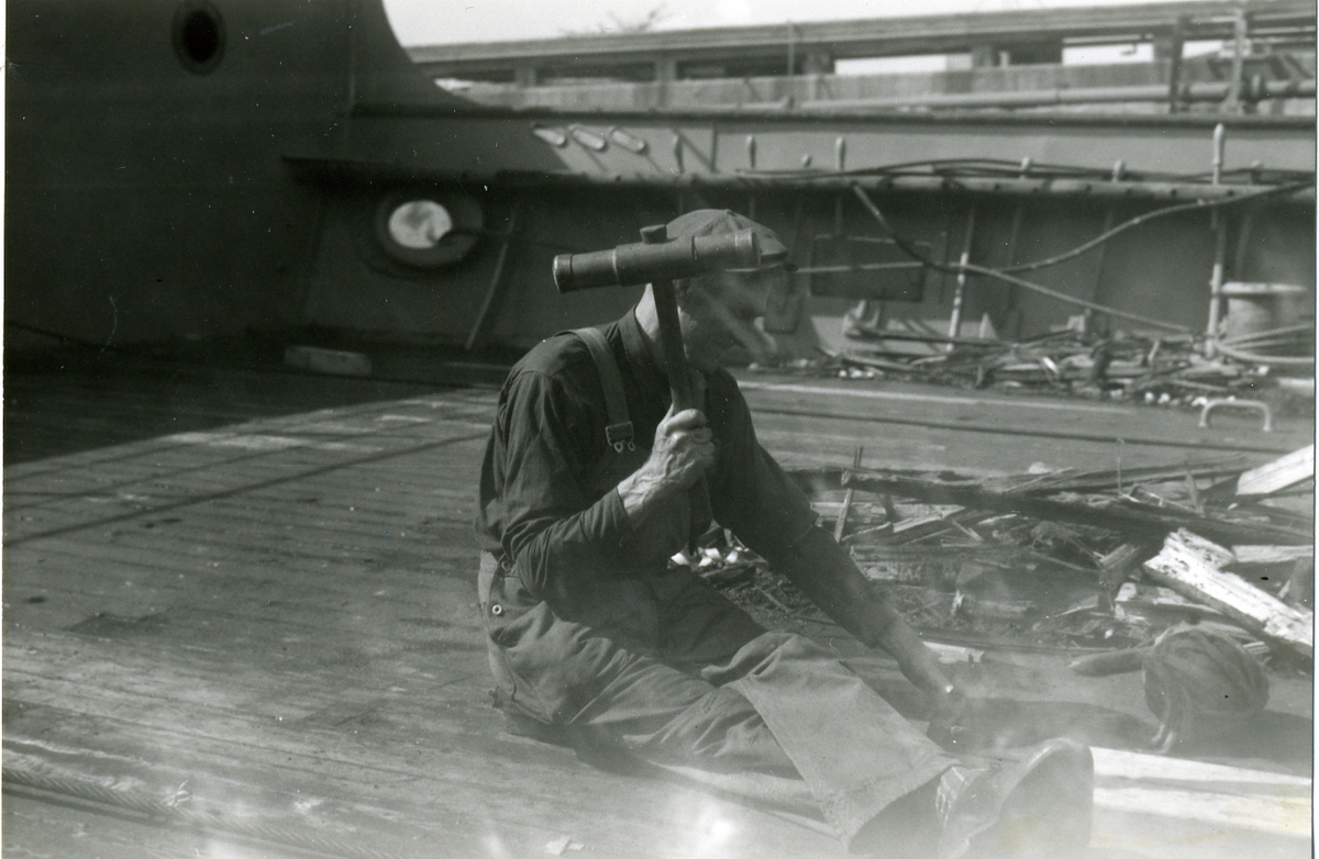 Titel: Däcket drevas på fd 4-mastade barken Moshulu i Beckholmsdockan 1961