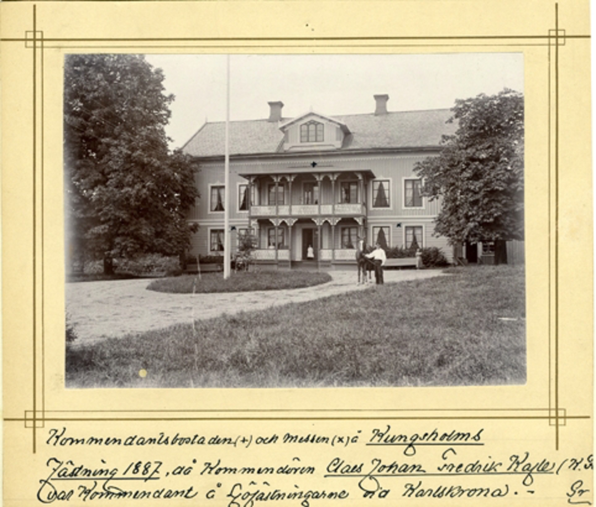 Kommendantsbostaden(+) och messen(x) å Kungsholms Fästning 1887, då kommendören Claes Johan Fredrik Kafle[].Gr.17 II
