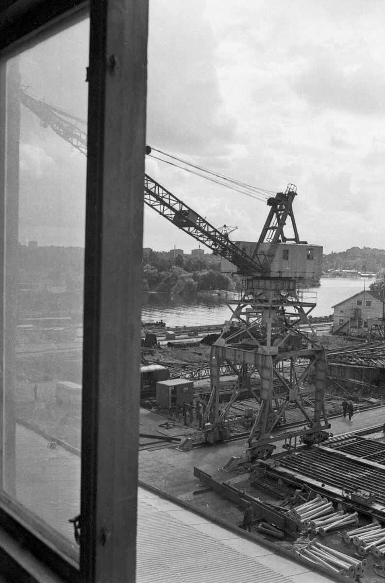 Ekensbergs varv 1970. Vy från övre våningen i stora plåthallen mot sydväst.