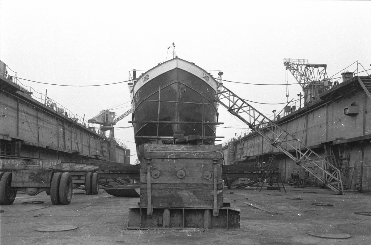 Ekensbergs varv 1970. Fartyget LINDÖ i stora dockan.
