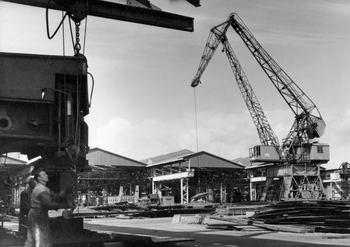Titel: Bild från varvsområdet med fartyg under byggnad.