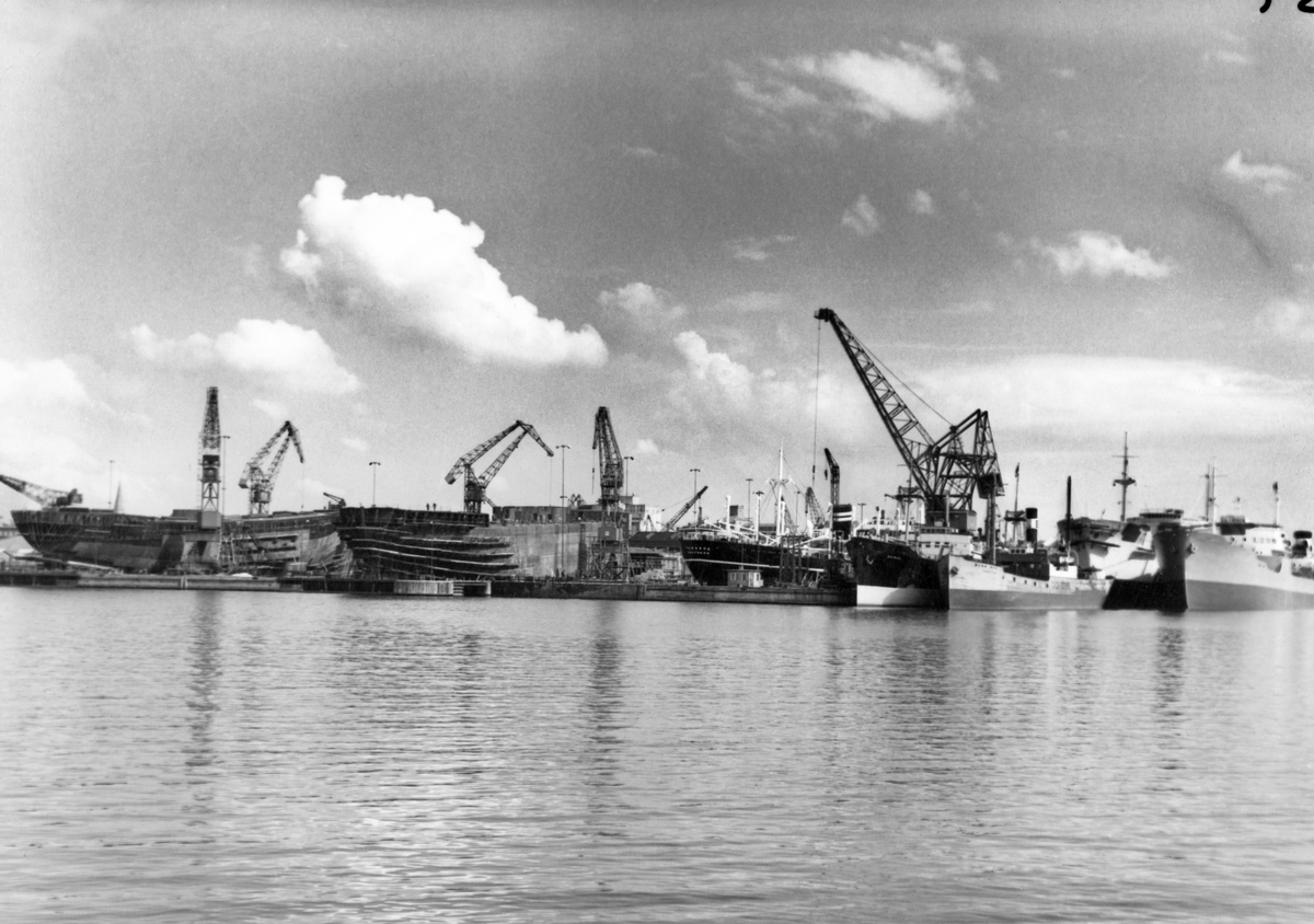 Bild från varvsområdet med fartyg under byggnad.