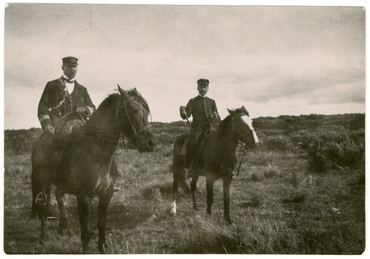 Olof Gyldén och argentinske löjtnanten Brebbin / Brebbia (?) till häst.