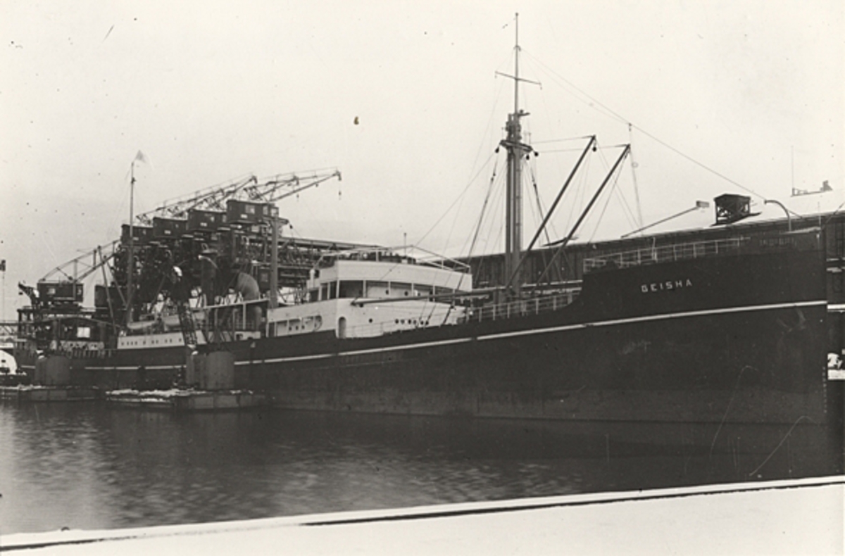 Lastmotorfartyget GEISHA av Haugesund i Frihamnen, Stockholm, år 1935.