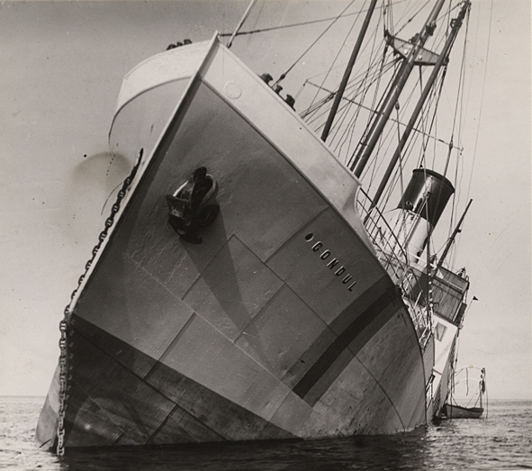 Lastångfartyget GONDUL av Stockholm, byggd i Helsingör 1928. Minsprängd i Öresund utanför Limhamn den 2 okt. 1940.