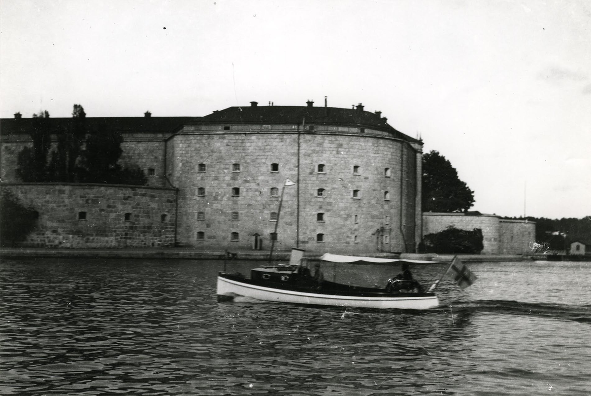 Vaxholms fästning, 1890-tal. [Tveksamt, då förbränningsmotorer till motorbåtar kom runt 1906-1910 i mer allmänt bruk]