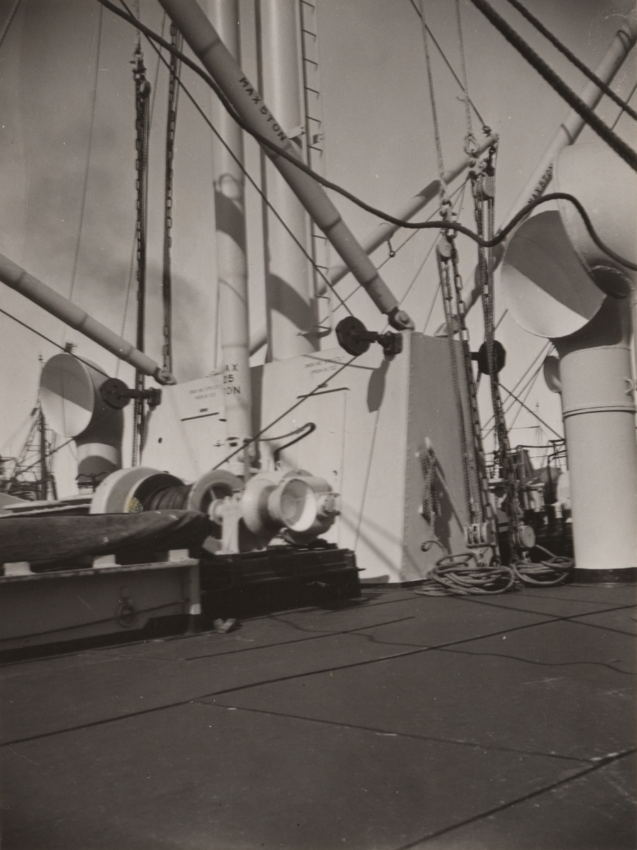 Titel: Lastmotorfartyget "NAGARA" av Göteborg, byggt i Göteborg 1929. Däcksbild.
