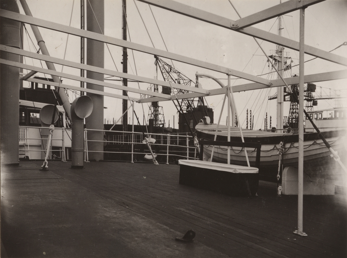 Titel: Lastmotorfartyget "NAGARA" av Göteborg, byggt i Göteborg 1929. Däcksbild.