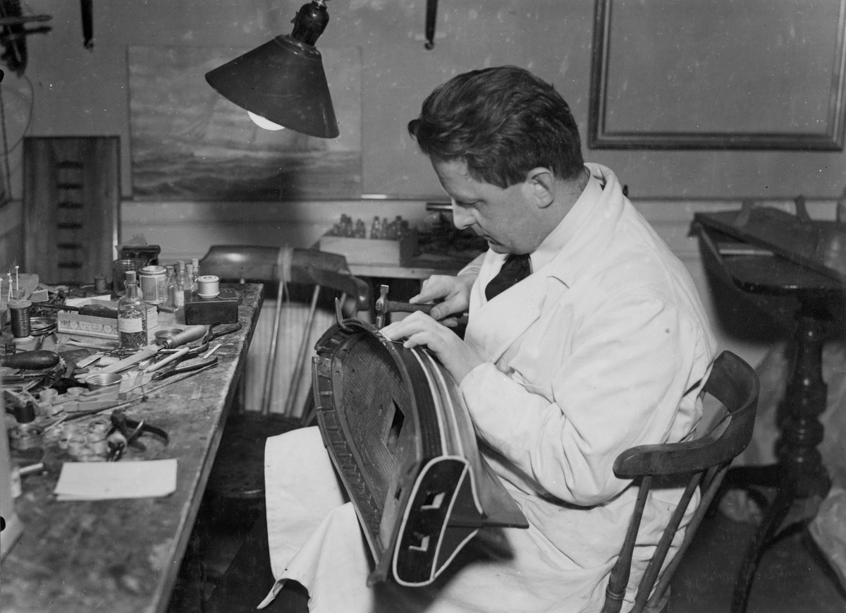 Kapten Sam Svensson i arbete med modellen till jakten LINDHOLM.