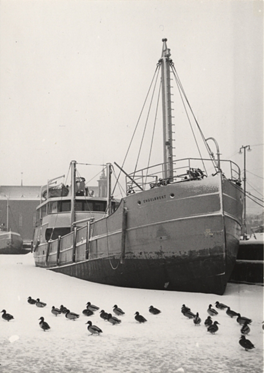 Lastmotorfartyget ENGELBREKT av Västerås vid Klara Strand i Stockholm, 1952.
