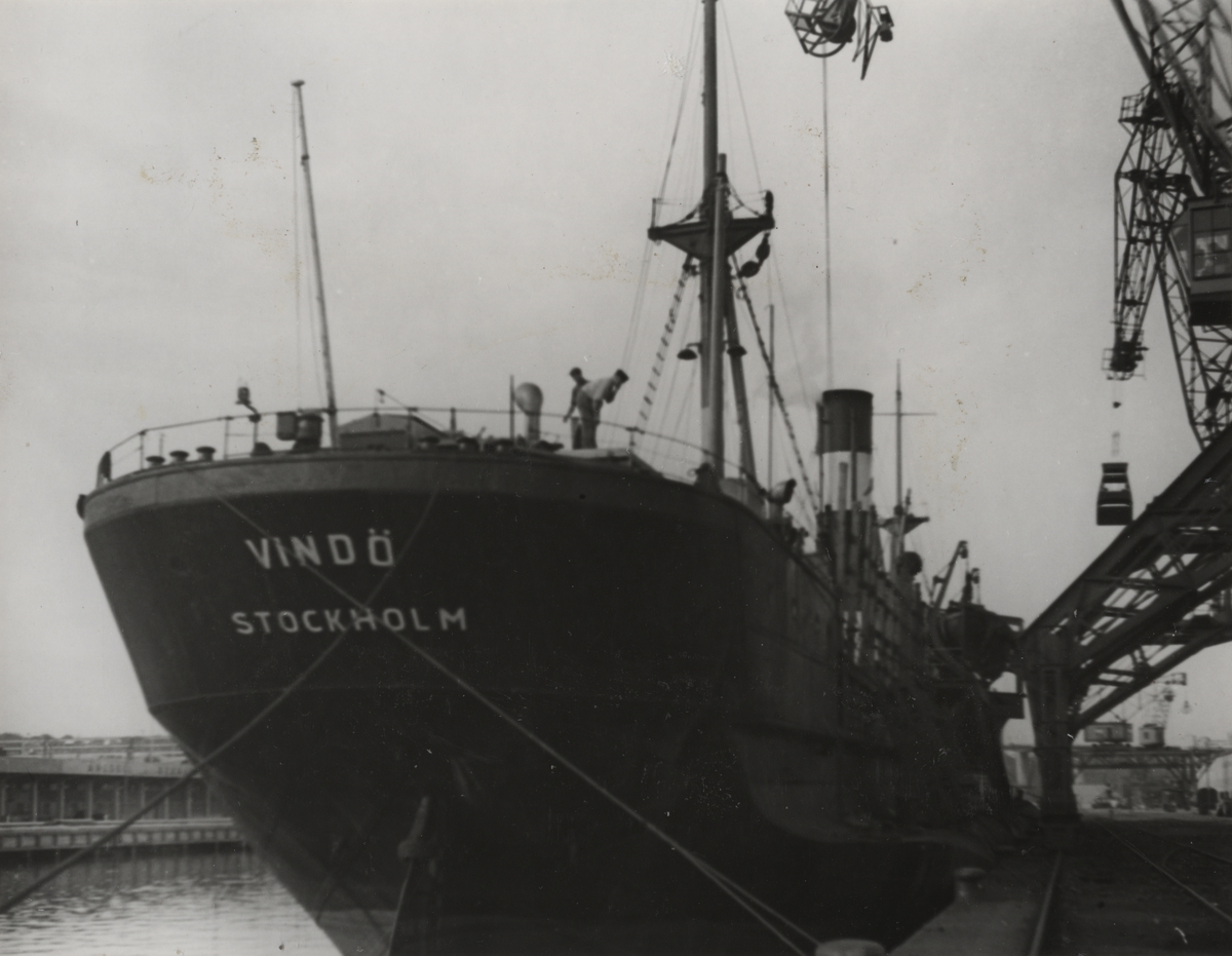 Lastångfartyget VINDÖ av Stockholm i Hammarbyhamnen, Stockholm, den 8/9 1951.