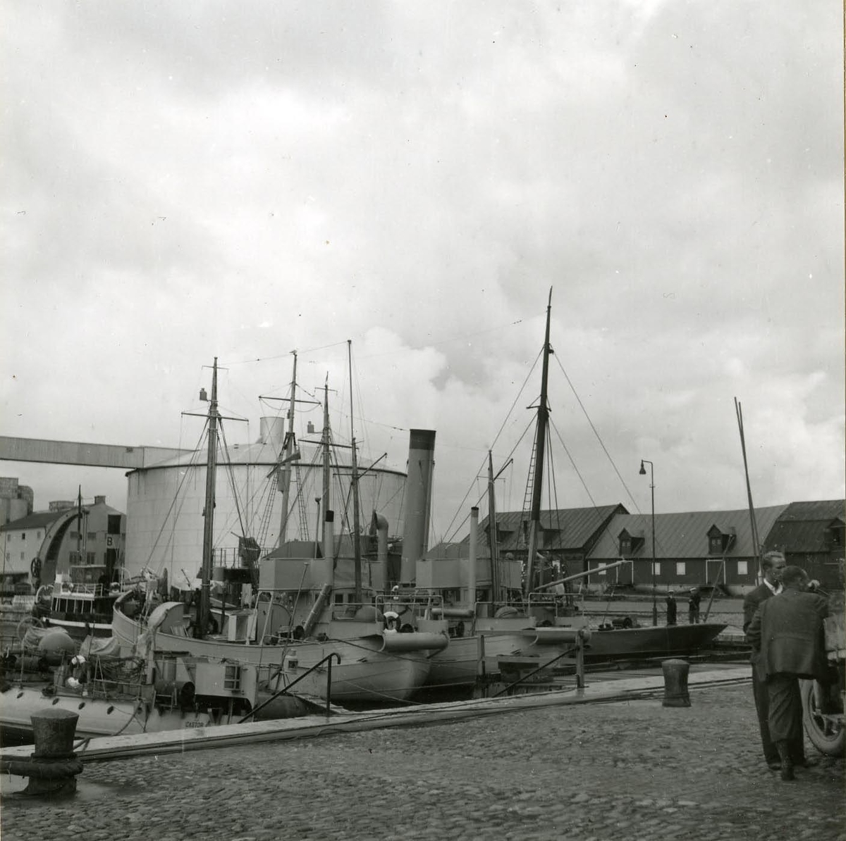 Fartyg av skilda slag, tilldelade Gotlands marin distrikt, förtöjda i inre delen av inre hamnen i Visby under den förstärkta försvarsberedskapen 1940.