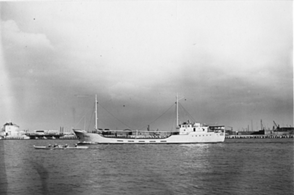 Lastmotorfartyget "AHOY". Foto från Köpen september månad 1955.
