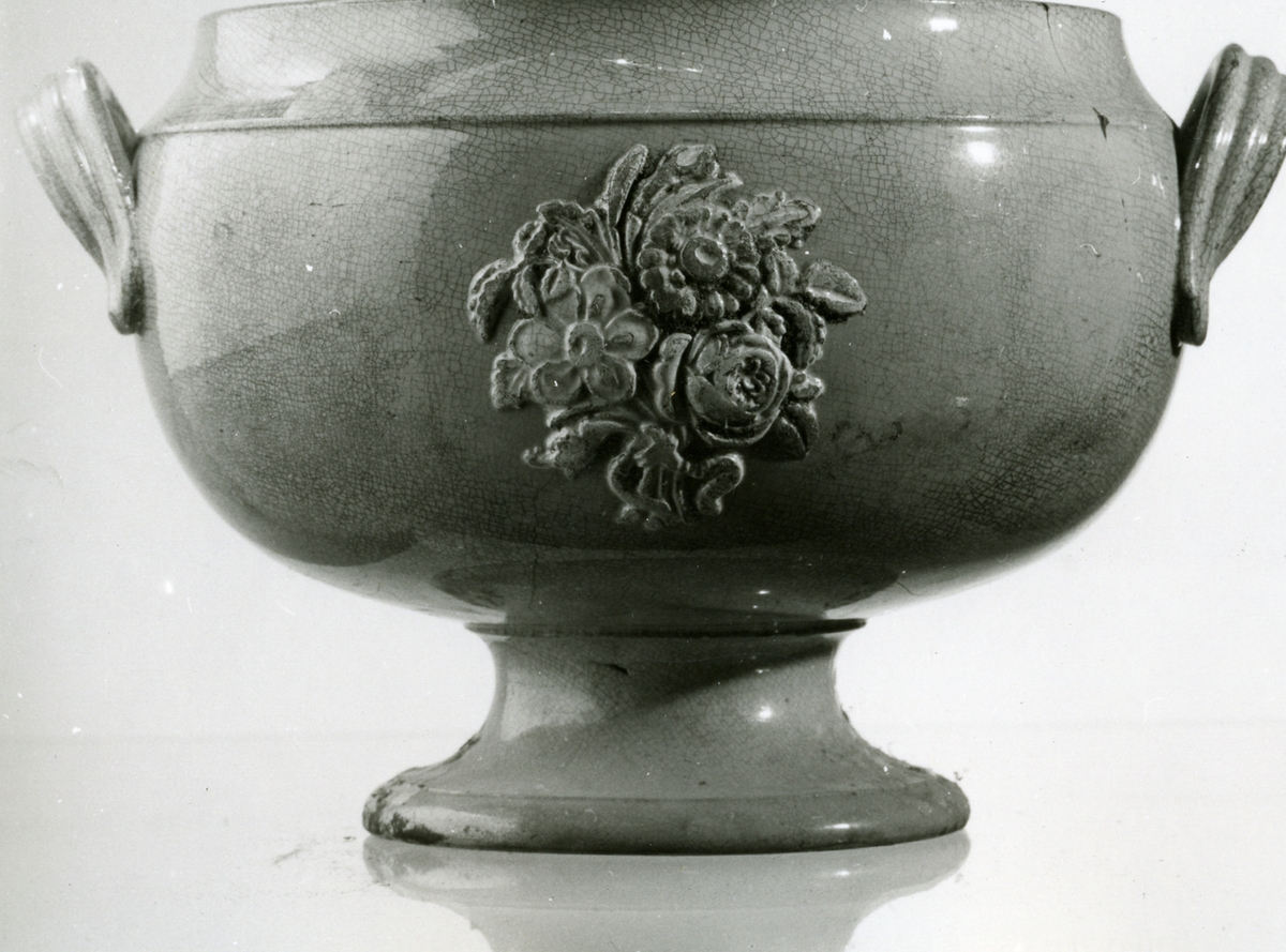 Terrin i gulglaserat lergods. Sjöfynd från Djurhamn (1800-tal).