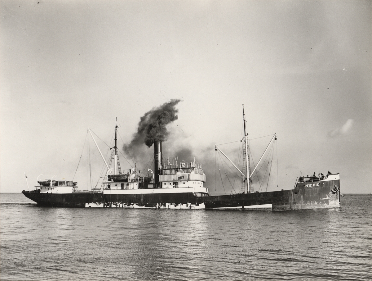 Titel: Lastångfartyget "HEBE". Foto från Köpenhamn någon gång under åren 1953-1961.