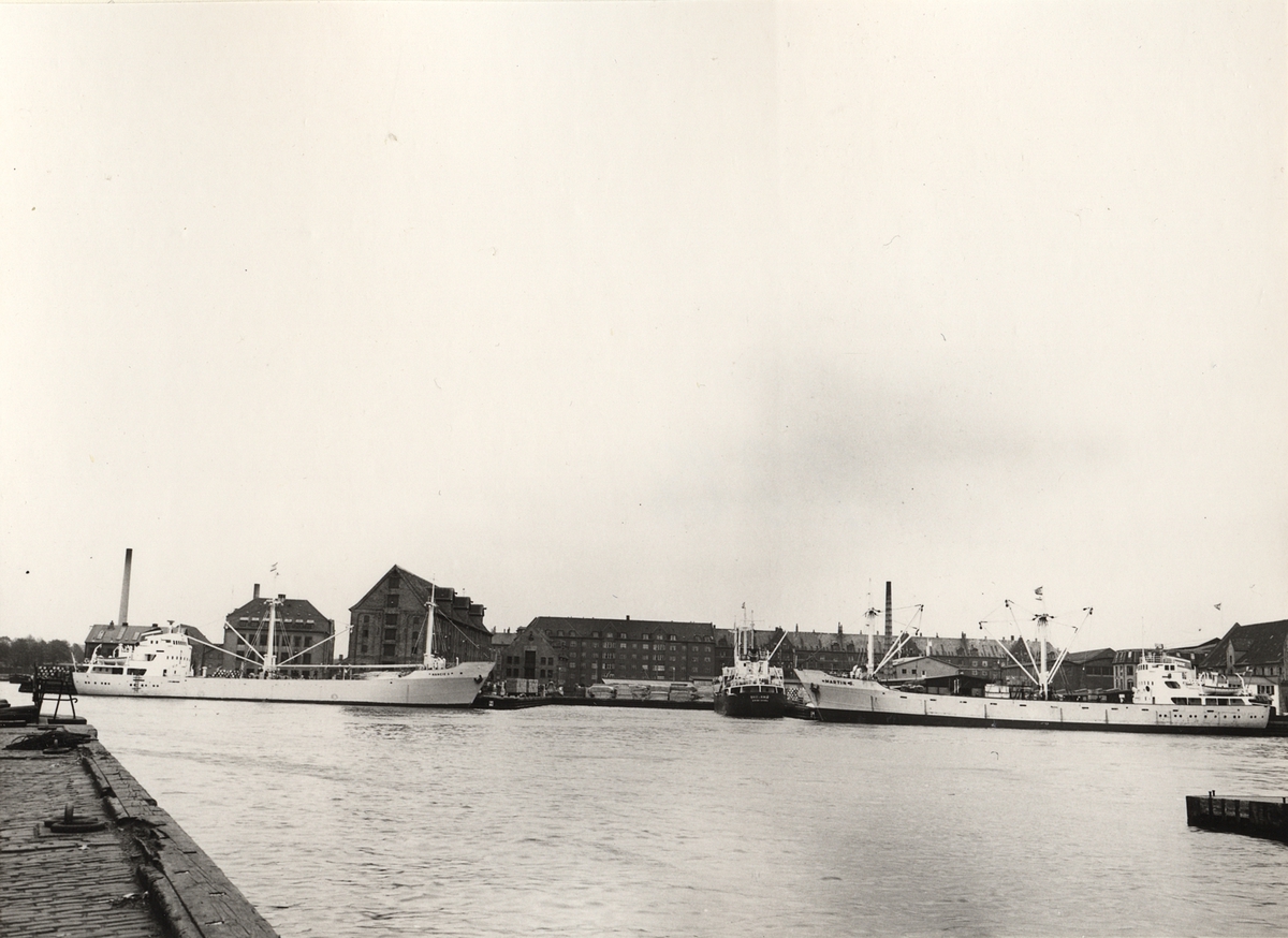 Lastmotorfartygen "NANCIE S." (t.v.) och "MARTIN S." (t.h.). Foto från Köpenhamn någon gång under 1950-talet.