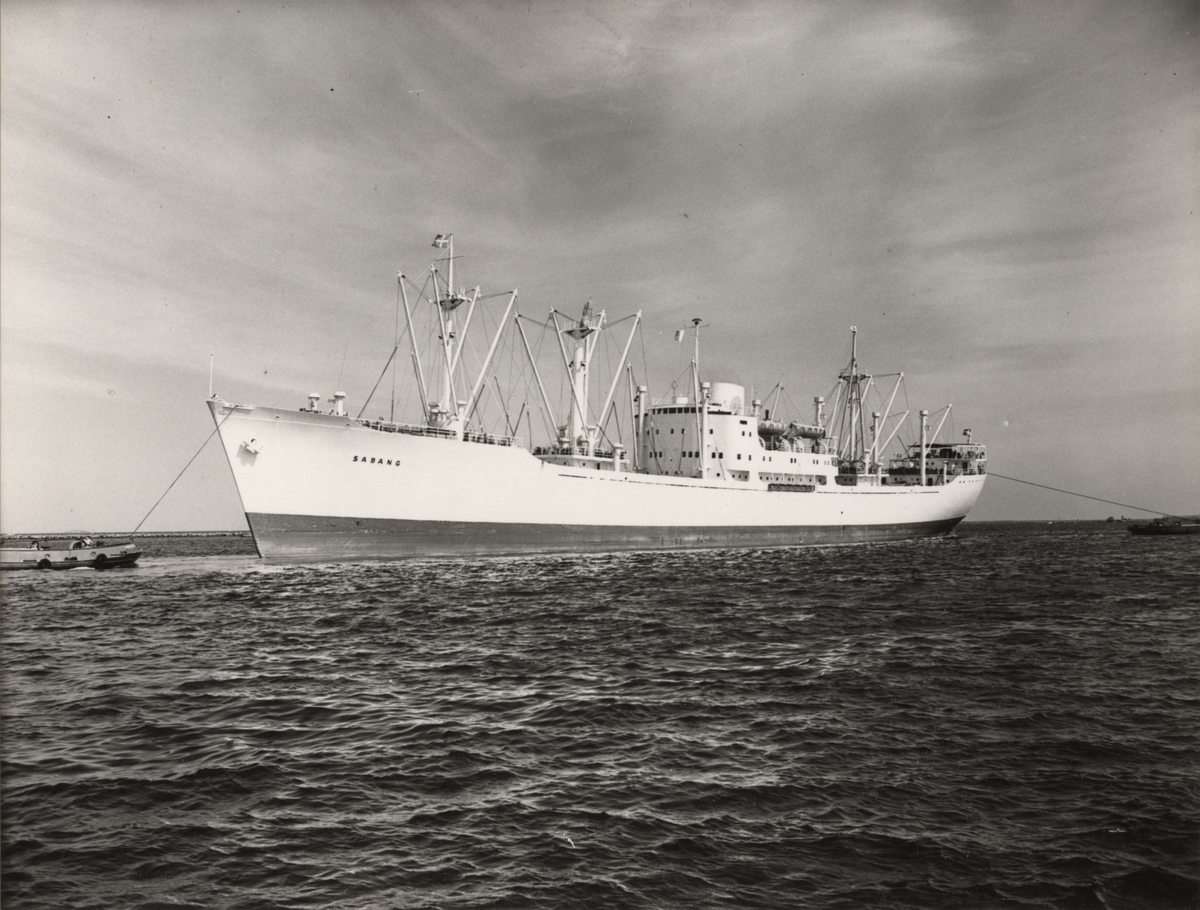 Foto i svartvitt visande lastmotorfartyget "SABANG" taget i Köpenhamn den 27.6.1959.