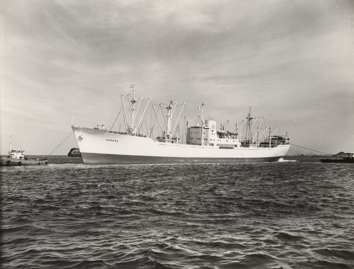 Titel: Foto i svartvitt visande lastmotorfartyget "SABANG" taget i Köpenhamn den 27.6.1959.