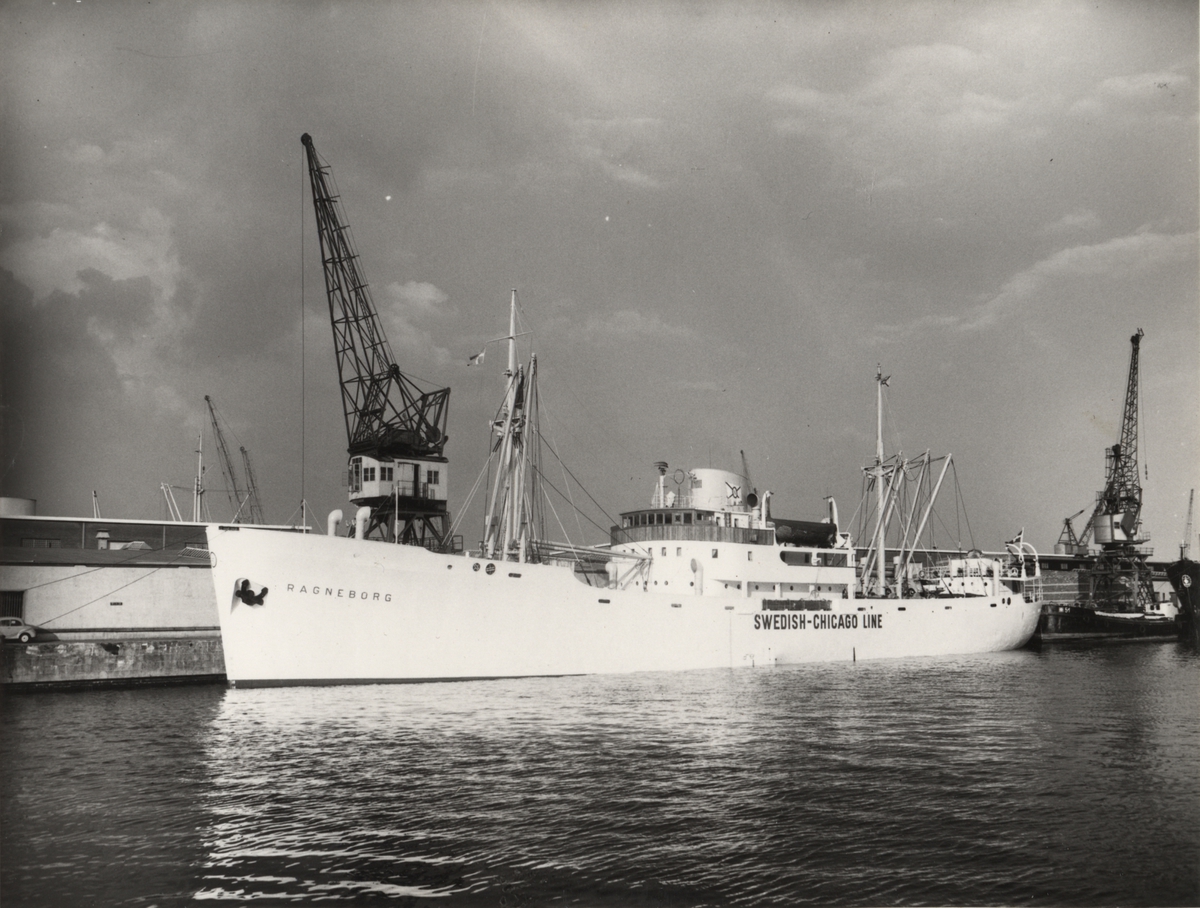 Foto i svartvitt visande lastmotorfartyget "RAGNEBORG" taget i Köpenhamn under september månad 1961.