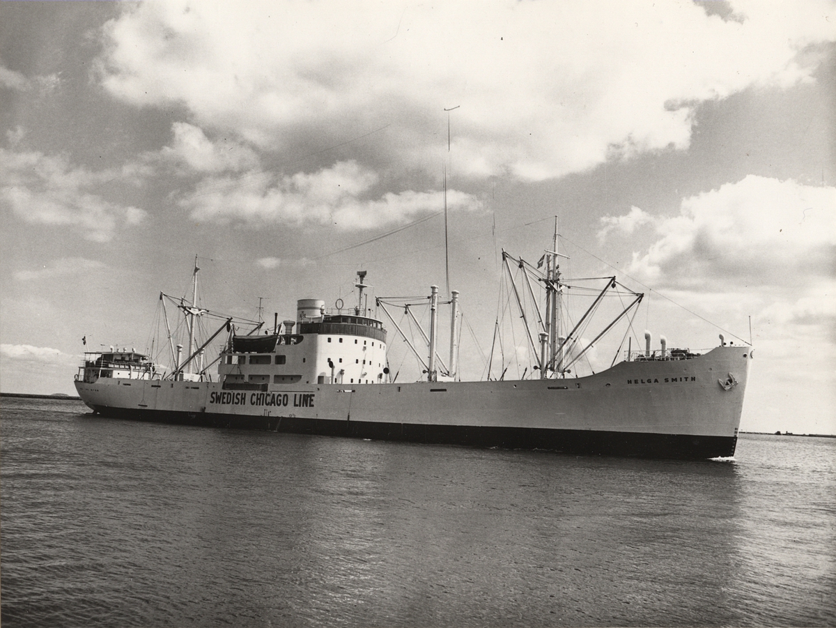 Foto i svartvitt visande lastmotorfartyget "HELGA SMITH" taget i Köpenhamn under maj månad 1961.