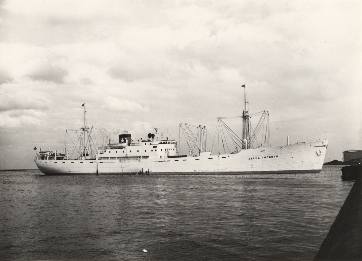 Foto i svartvitt visande lastmotorfartyget "SELMA THORDÉN" taget i Köpenhamn under augusti månad 1962.