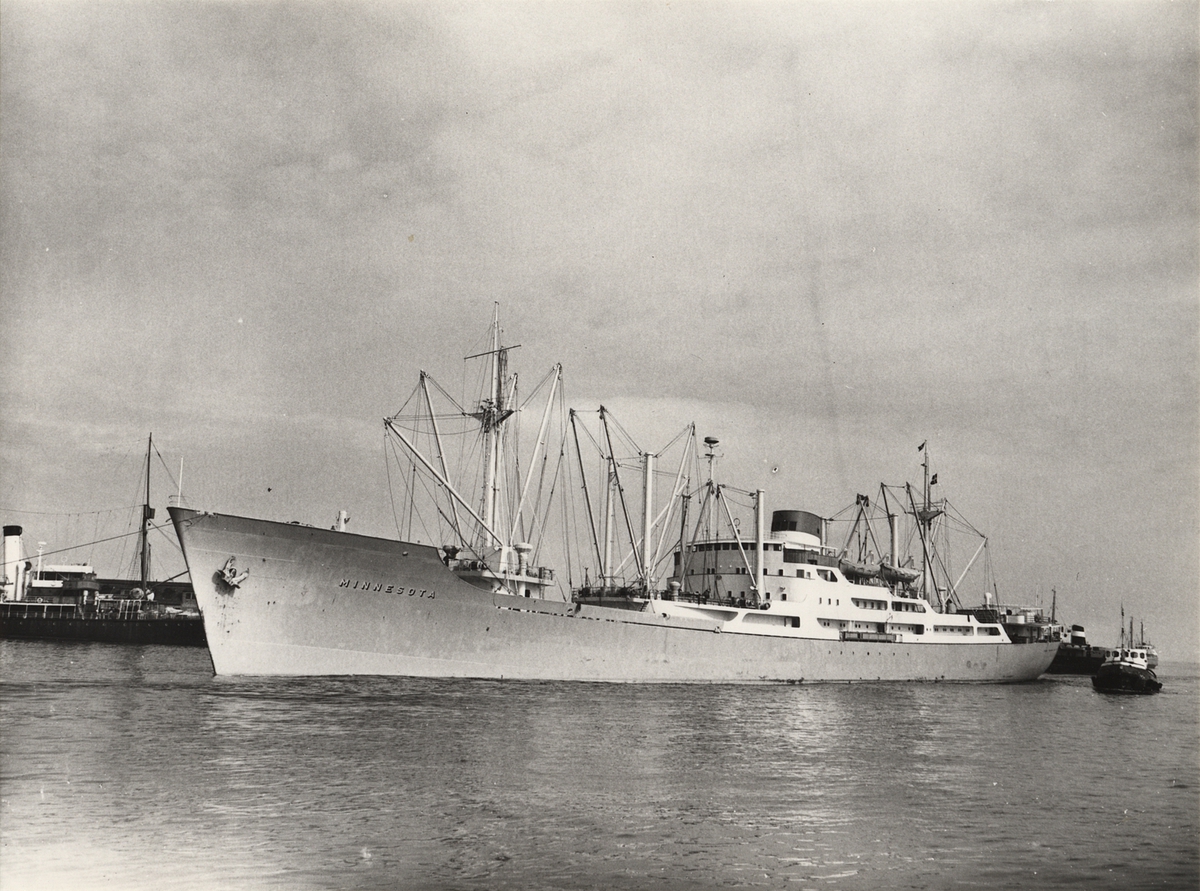 Foto i svartvitt visande lastmotorfartyget "MINNESOTA" taget i Köpenhamn under mars månad 1962.