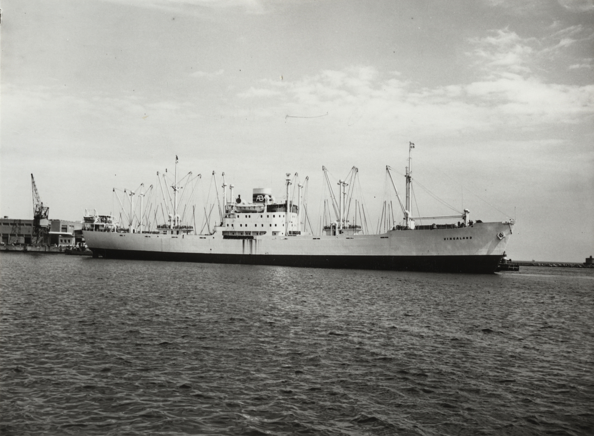 Titel: Foto i svartvitt visande lastmotorfartyget "VINGALAND" taget i Köpenhamn under september månad 1953.
