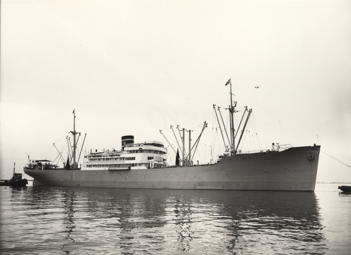 Foto i svartvitt visande lastmotorfartyget "PARAGUAY" i Köpenhamn under 1950-talet.