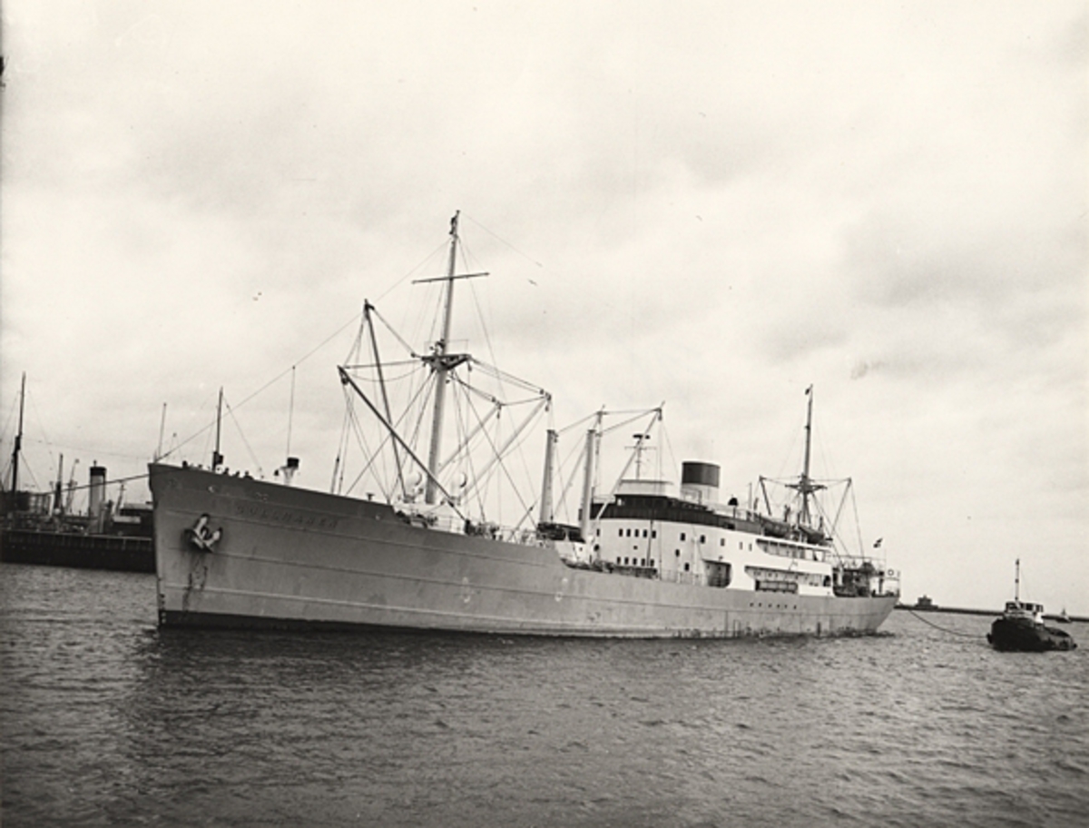 Titel: Foto i svartvitt visande lastmotorfartyget "GULLMAREN" i Köpenhamn.