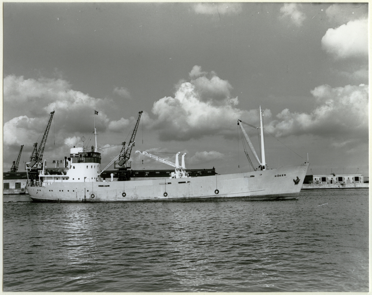 Foto visande lastmotorfartyget "HÖKEN" i Köpenhamn den 25.8.1954.