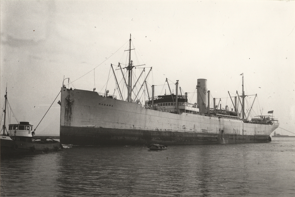 Foto i svartvitt visande lastmotorfartyget "NAGARA" i Köpenhamn.