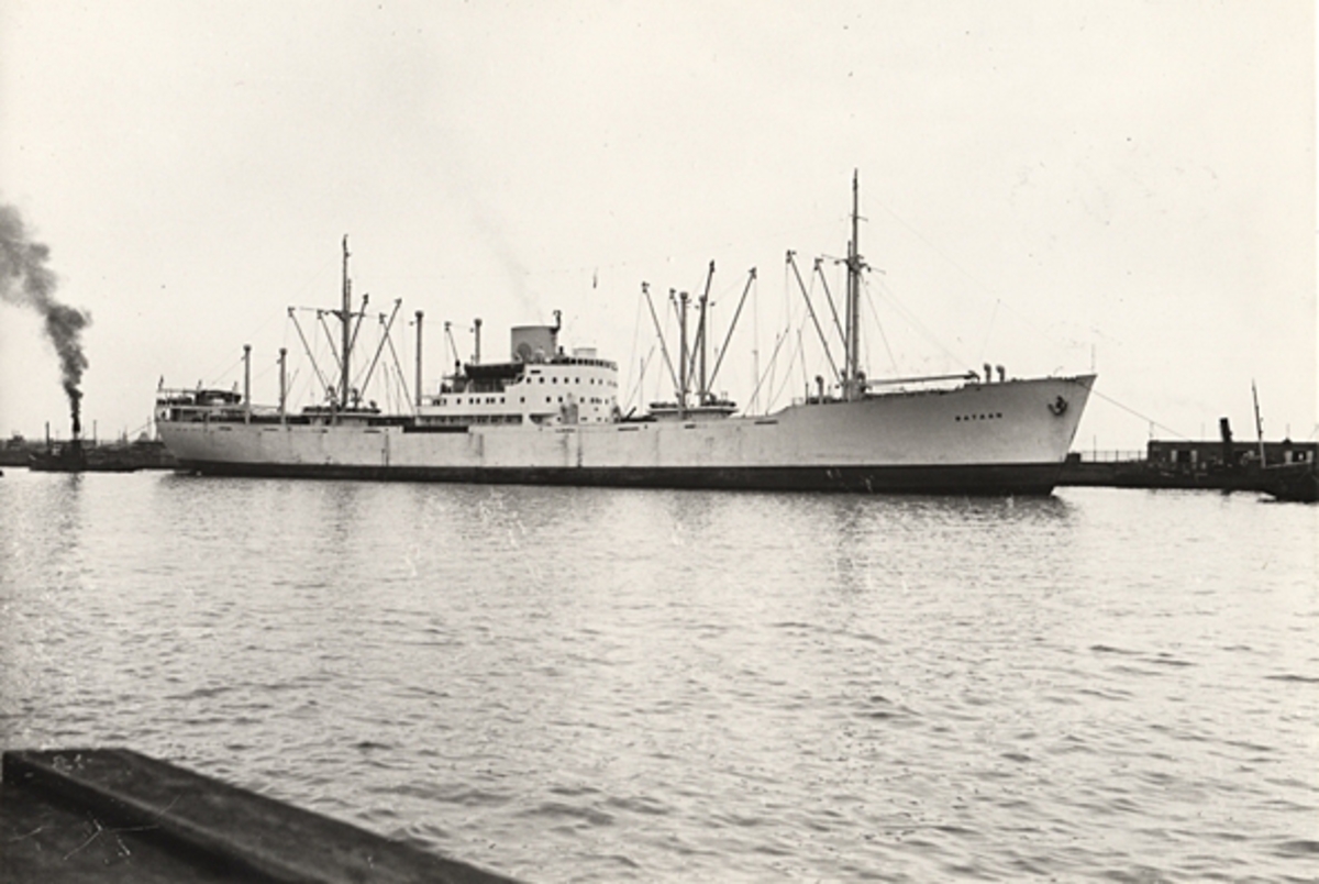 Foto i svartvitt visande lastmotorfartyget "BATAAN" i Köpenhamn.