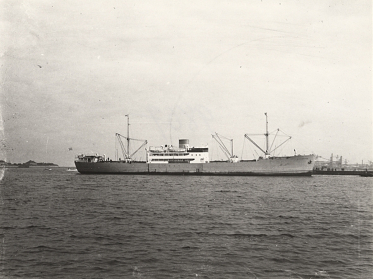 Foto i svartvitt visande lastmotorfartyget "GULLMAREN" i Köpenhamn.