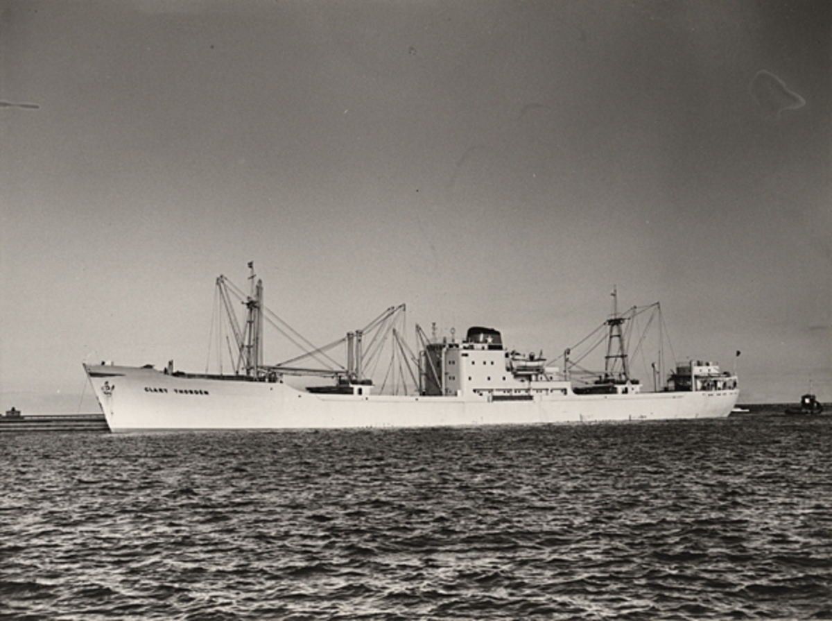 Foto i svartvitt visande lastmotorfartyget "CLARY THORDÉN" i Köpenhamn den 13.2.1955.