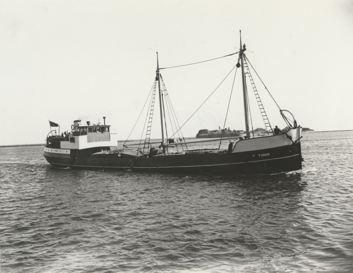 Foto i svartvitt visande lastmotorfartyget "TÄRNÖ" i Köpenhamn den 5.9.1953.