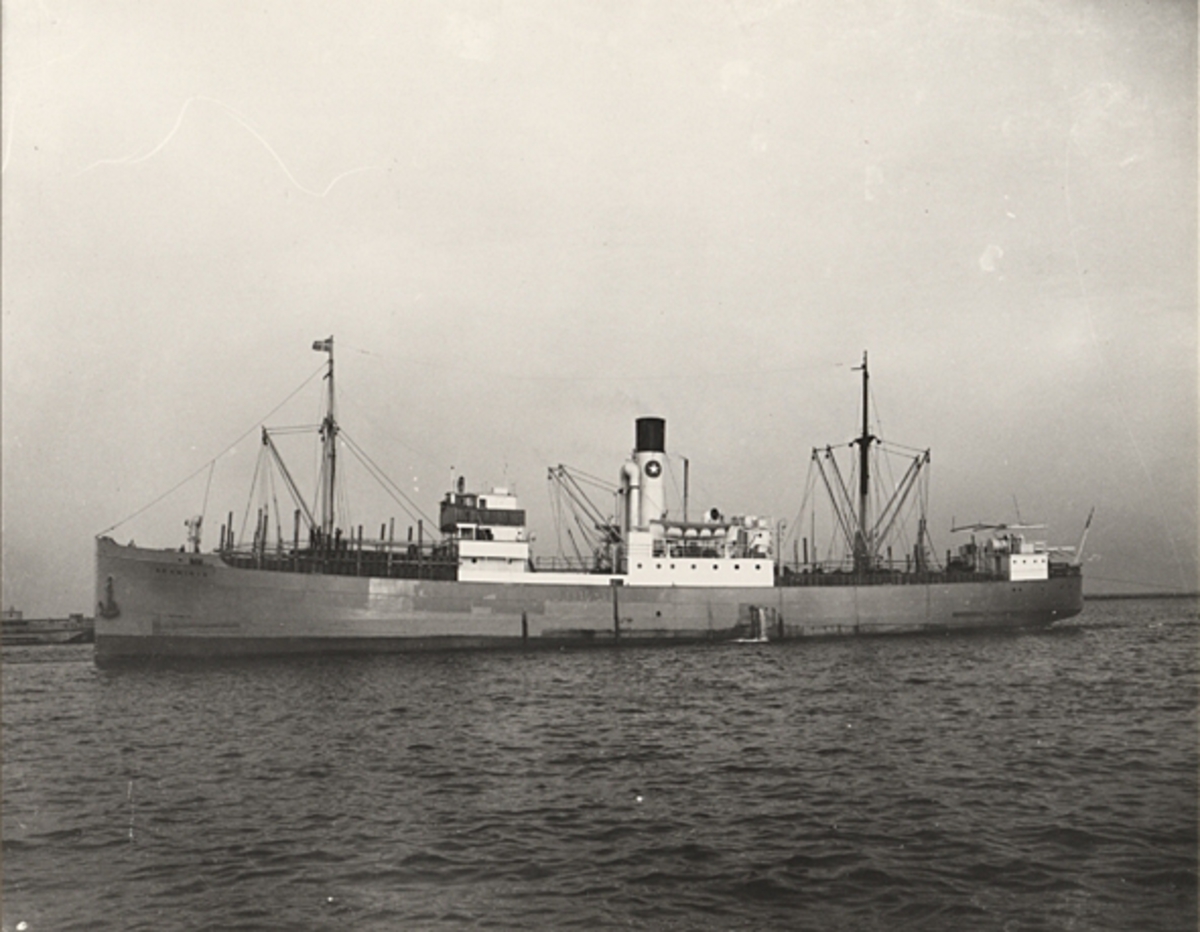 Foto i svartvitt visande lastångfartyget "BERNICIA" i Köpenhamn under september månad 1953.