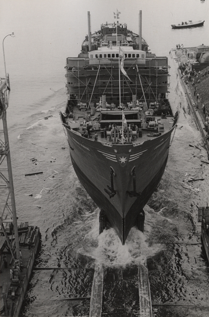 Det danska lastmotorfartyget JEPPESEN MAERSK löper av stapeln den 9.8.1951.