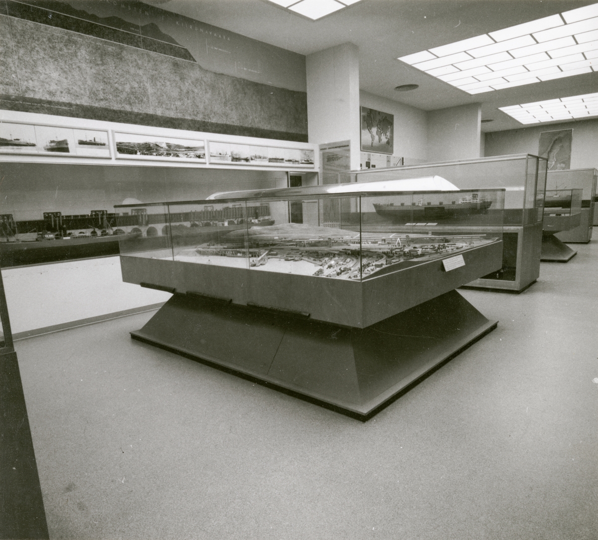 Utställning i Rederisalen. Del av Grängesbergsbolagets avdelning. Monter med hamnmodell.
