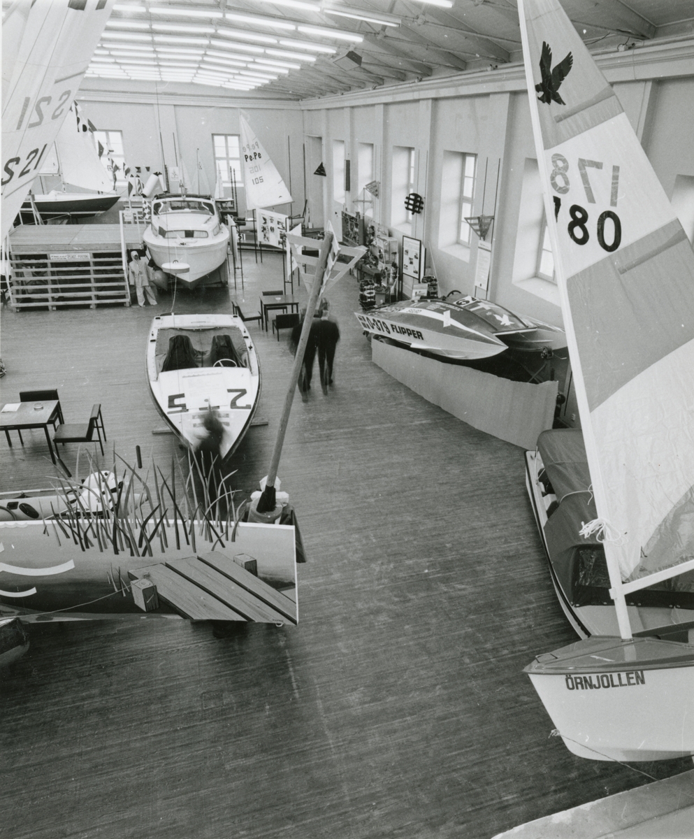 Båtutställningen i Teknorama november 1969. Vy av interiör.