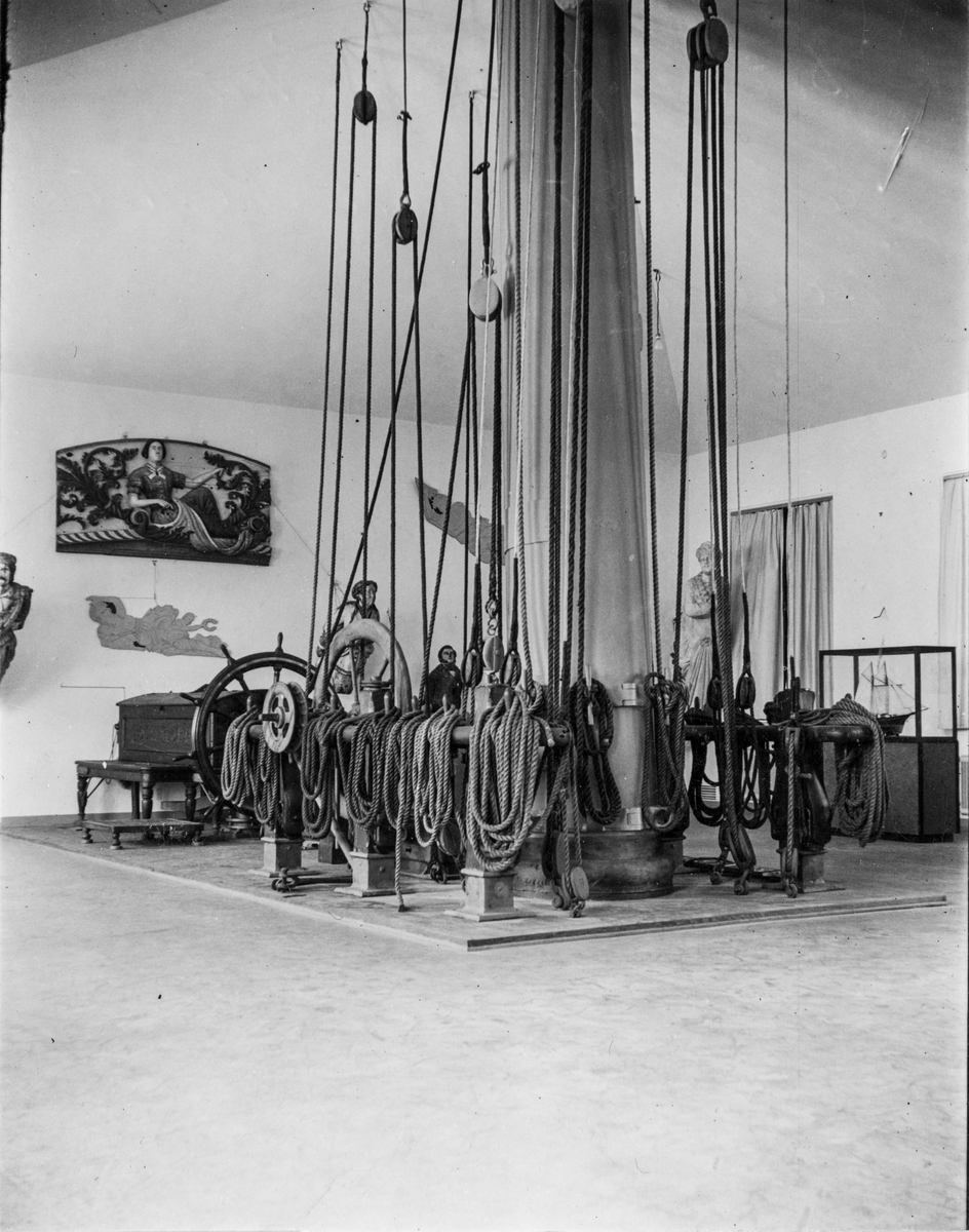 Utställning i Mastrummet i Sjöfartsavdelningen. Detalj av däcket från den fyrmastade barken BEATRICE.