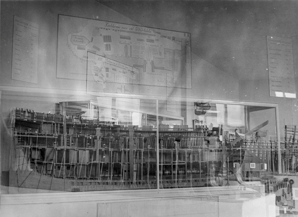 Tillfällig utställning i Chapmansalen 1938. Fartygsmodell i monter.