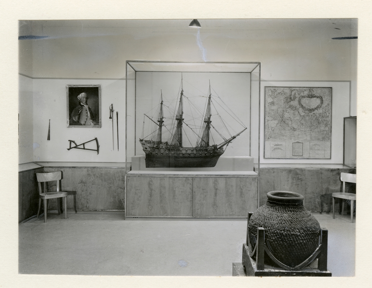 Utställning, avdelningen för sjöfart på Ostindien i Sjöfartsavdelningen. Konst, fartygsmodell m.m.