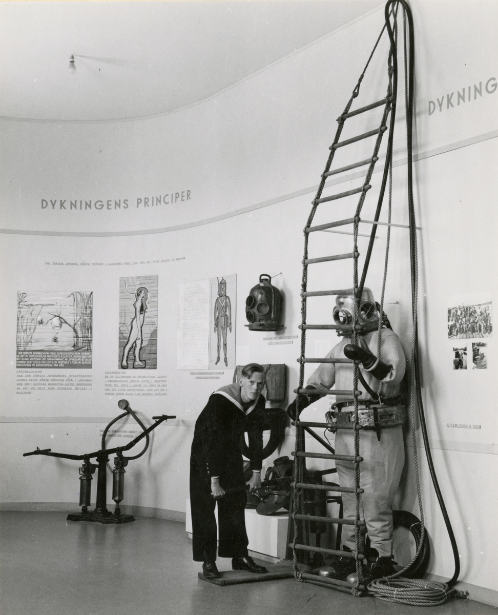 Tillfälliga utställningen "Dykeri och bärgning". Presentation av mjuk dykardräkt enligt Fahnehjelms patent från 1839.