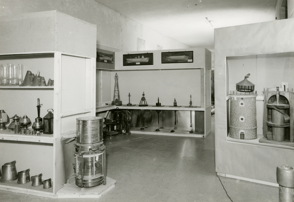 Interiör från Sjöhistoriska museet. Fyr- och Lotsutställningen 1960. Provexponering.