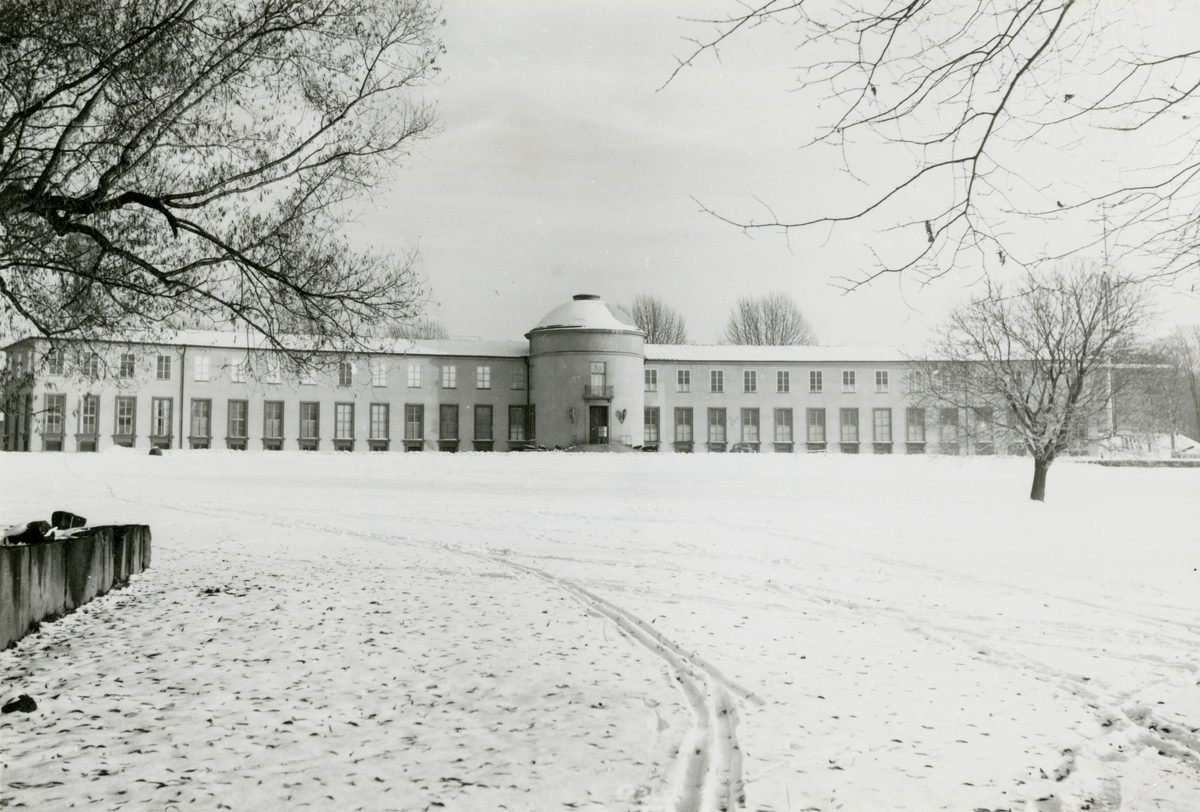 Vinterbild föreställande Sjöhistoriska museets framsida.