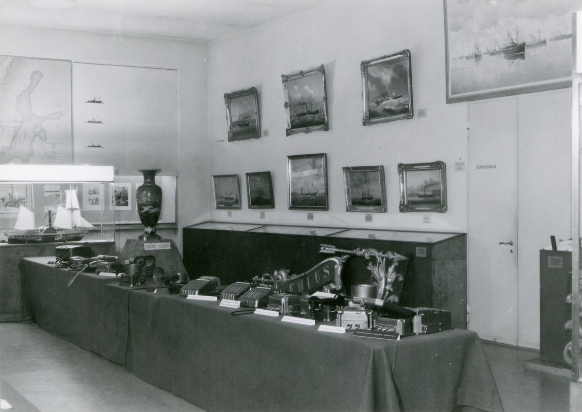 Elektrofons tillfälliga utställning av fartygstelefoner i rum 17 i Sjöfartsavdelningen.