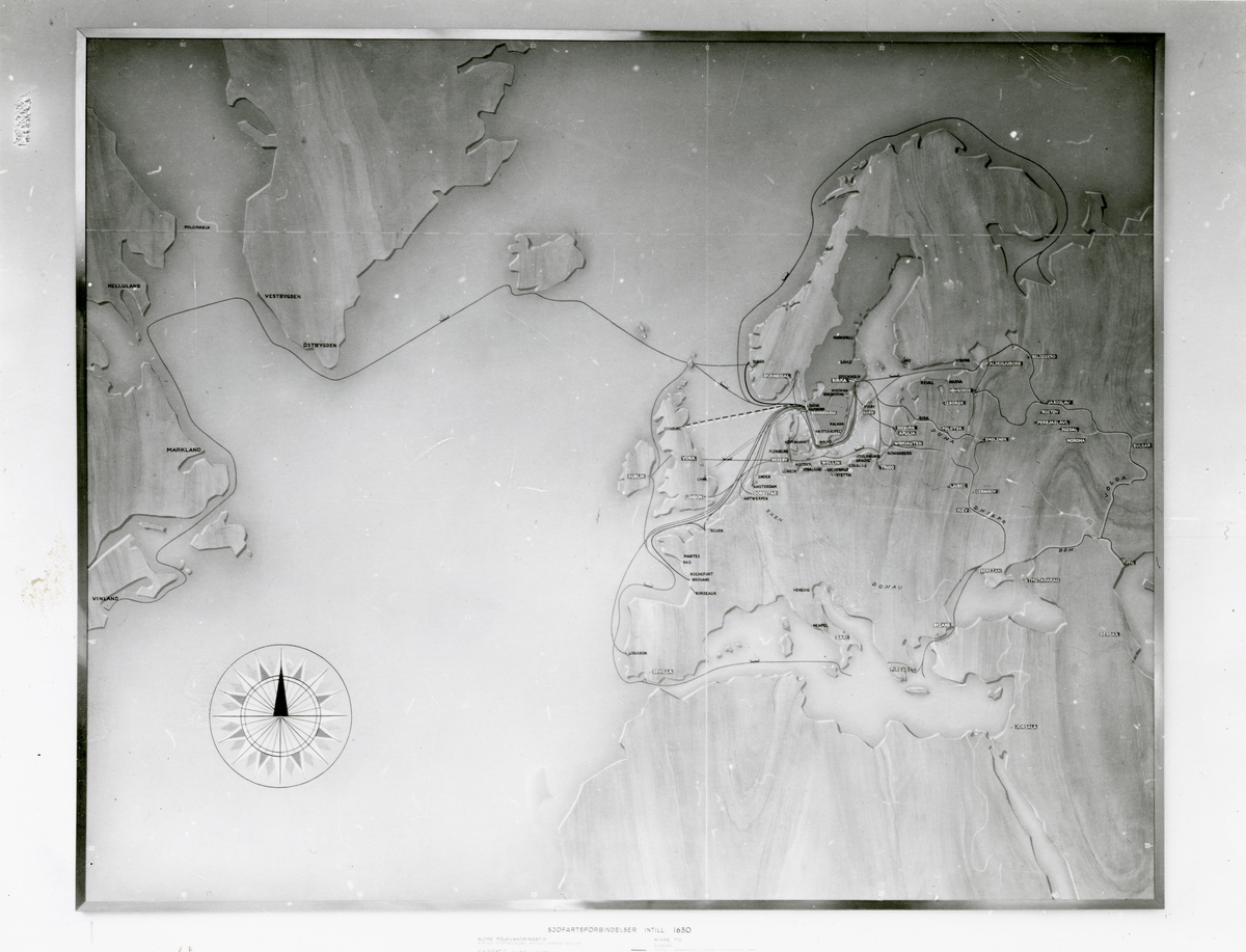 Utställning i Sjöfartsavdelningen. Karta nr. 1 i översiktsrummet visande "Sjöfartsförbidelser intill 1630".